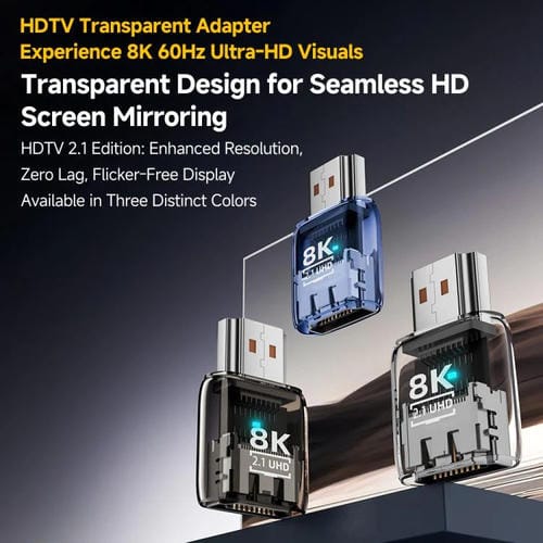 Adaptador HDTV 2.1 macho a HDTV 2.1 hembra Ultra HD transparente de 8K 60 Hz (transparente)