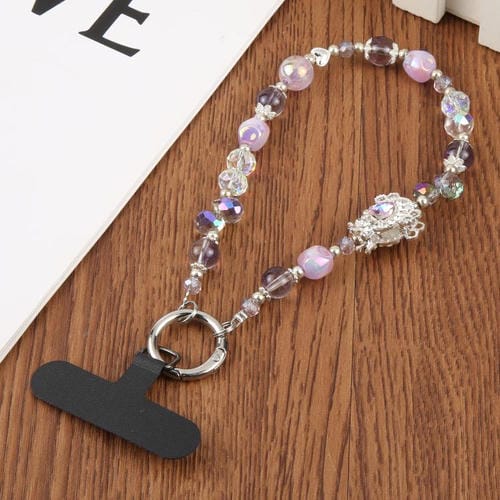 Correa universal antipérdida para teléfono con cuentas de cristal de lujo (morado)