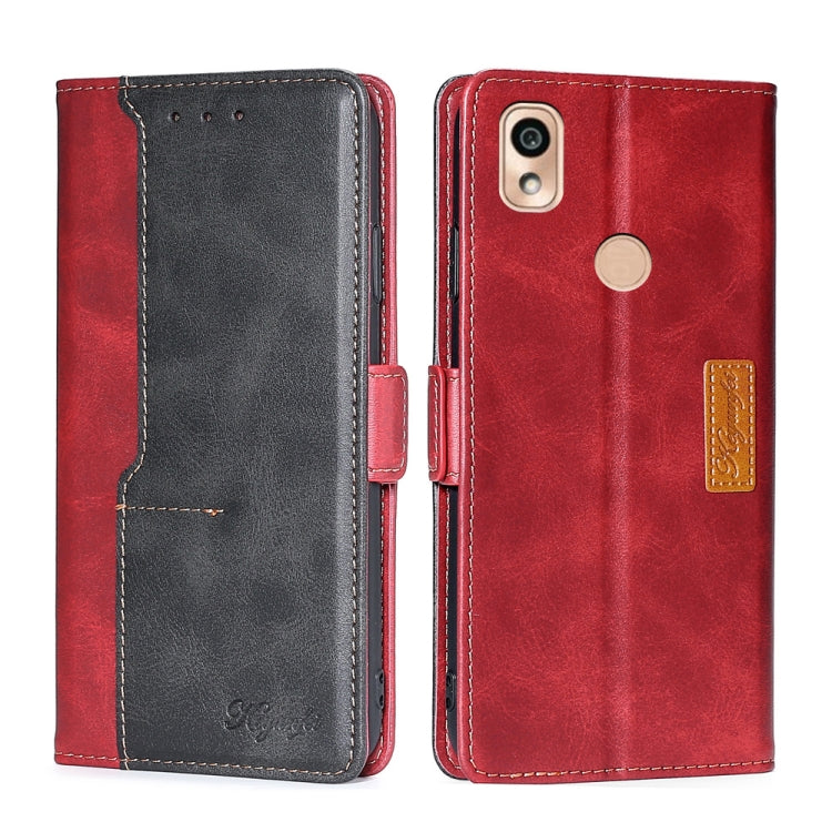 Funda de Cuero con Hebilla Lateral para Kyocera Digno Sx4 5G (Rojo y Negro)