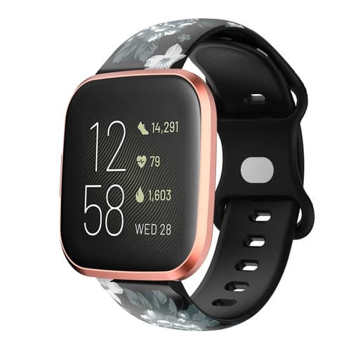 Correa de Reloj Fitbit Versa con hebilla mariposa y silicona (Flores Grises)