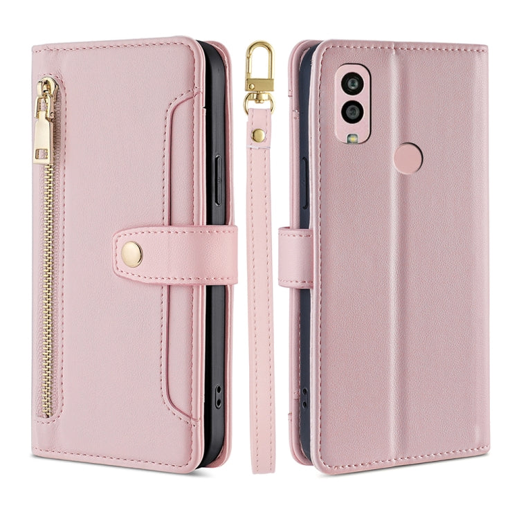 Funda de Cuero Cross-Body para Kyocera Android One S10 con Textura Sheep y Cremallera (Rosa)