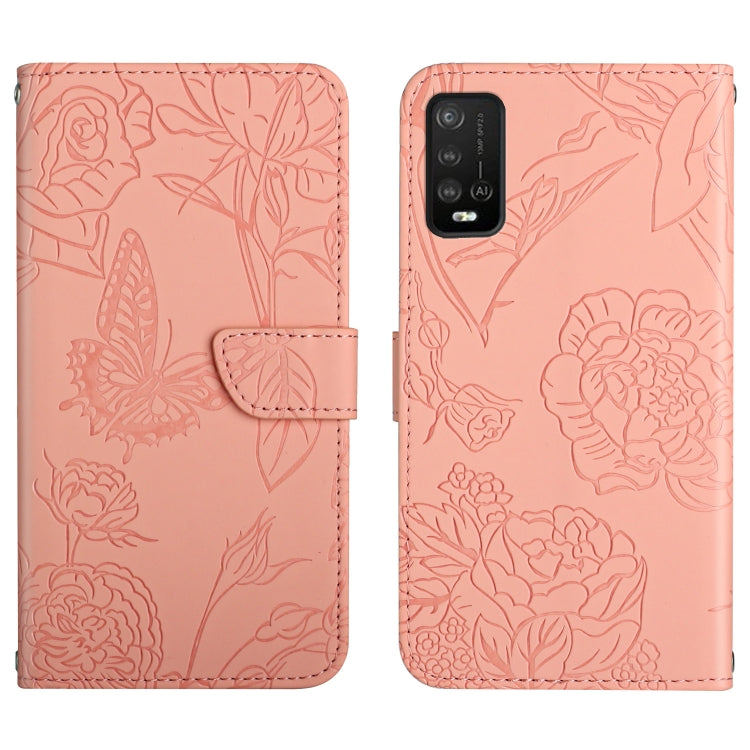 Funda de cuero en relieve para Wiko Power U10 U20 Siente la Piel Mariposa Peony (Rosa)