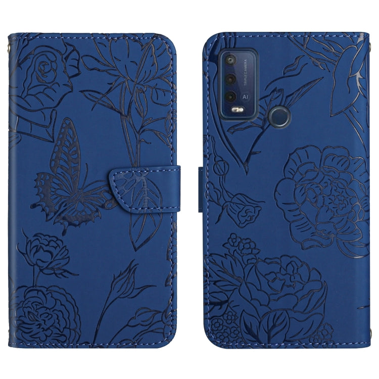 Funda de Cuero En Relieve para Wiko Power U30 Siente la Piel de la Mariposa (Azul)