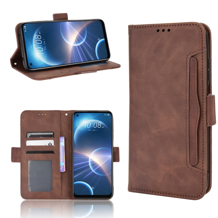 Funda de Cuero para HTC Desire 22 Pro con Ranuras para Tarjetas y Textura Skin Feel Calf (Marrón)