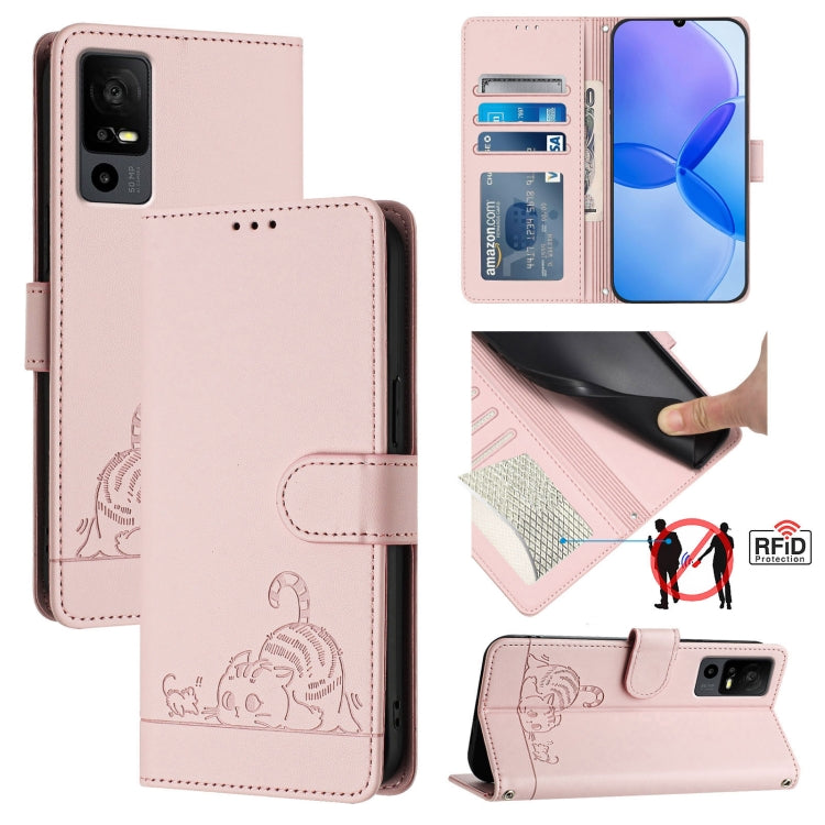 Estuche para TCL 30 Se CAT Rat de Cuero RFID con Patrón en Relieve y Cordón (Rosa)