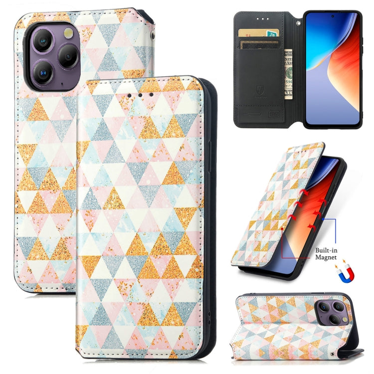 Estuche de Cuero Magnético Caseneo para BlackView A96 con Diseño Rombo Colorido