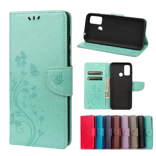 Estuche Horizontal Wiko Power U30 (Gris) con Estampado de Mariposa y Soporte para Tarjeta