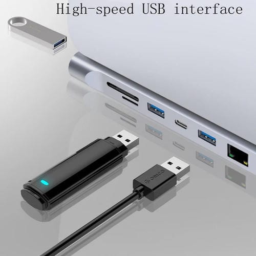 - Interfaces: 12 Puertos incluyendo 2 HDMI UHD 4K x 2K, 2 USB 3.0 con tasa de transferencia de 5 Gbps, 1 RJ45 Gigabit Ethernet, 1 VGA 1080P @ 60Hz, Lector de Tarjetas SD y TF con Soporte hasta 512 GB, salida de audio independiente de 3.5 mm con Soporte para Micrófono, 2 Puertos Tipo C (uno con PD hasta 87W), dimensiones 275x80x17.2 mm, peso 300 g