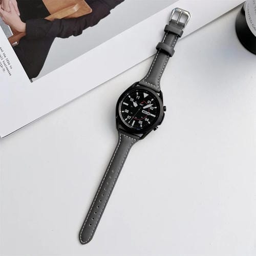 Correa de Reloj 22mm Cuero Reemplazo Costura Tejido Liso Cintura Pequeña (Gris)