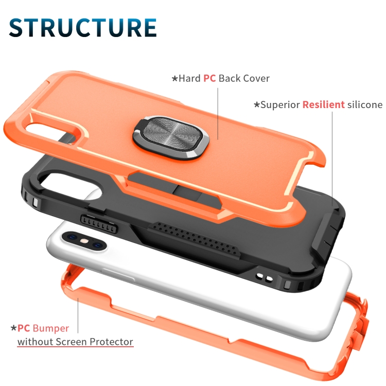 Funda Telefónica TPU 3 En 1 con Soporte de Anillo para iPhone Xs Max (Orange)