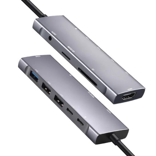 - 1x Adaptador Hub 9 en 1 USB Tipo C a HDMI USB 3.0x3 Tipo-C PD SD TF Audio