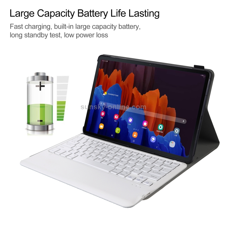 La Funda de Cuero Platillo Horizontal Desmontable A970 está diseñada específicamente para los modelos Samsung Galaxy Tab S7 FE T730/T736 y S7+ T970/T975/T976. Este Accesorio combina protección y funcionalidad, ofreciendo un Teclado magnético extraíble que facilita la escritura y la productividad en movilidad. La Cubierta está fabricada en Cuero PU de alta calidad, proporcionando un acabado elegante en color Oro. Además, cuenta con orificios precisos para las Cámaras Frontales y Traseras, asegurando el uso Completo de las funciones del dispositivo sin necesidad de retirar la Funda. Incorpora una Batería de polímero de litio de 200mAh que alimenta el Teclado, con un voltaje de Carga de 3.7V y entrada Micro USB 5V, permitiendo hasta 100 horas de uso continuo y un tiempo de espera aproximado de 100 días. El Teclado mantiene una Conexión estable hasta 10 metros, ideal para un uso cómodo y eficiente.