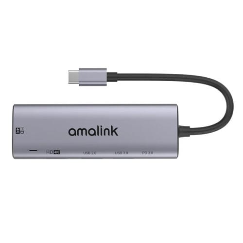 Hub Multifunción Amalink 95126 Tipo-C USB-C a Dual HDMI con 2 Puertos USB y PD 3.0 (Gris)
