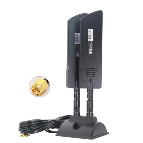 La Antena externa para enrutador 5G con una ganancia de 42 dBi está diseñada para amplificar la cobertura y mejorar la Señal WiFi en Exteriores. Compatible con dispositivos que operan en un rango de frecuencia amplio de 600 a 6000 MHz, esta Antena es ideal para aumentar la eficiencia de transmisión y la recepción en redes 5G y WiFi. Su diseño incluye una Base magnética fuerte que permite una ubicación estable y segura, así como un ángulo ajustable que optimiza la sensibilidad de la Señal. El Conector SMA macho facilita la Conexión con diversos modelos de enrutadores, mientras que el Cable RG174 de aproximadamente 5 metros ofrece Flexibilidad para su instalación en diferentes entornos.