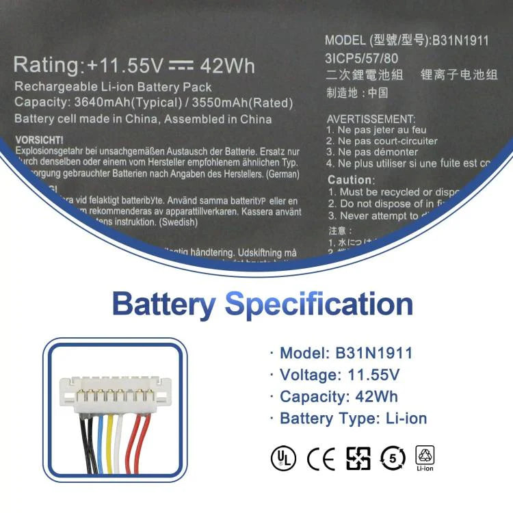 5. Números de pieza compatibles: B31N1911, C31N1911, 0B200-03580000, 0B200-03750000, B0B200-03580300