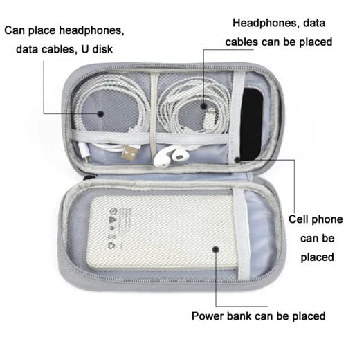 Es adecuada para discos duros externos, bancos de Alimentación y Cables de datos, ofreciendo protección y organización para estos dispositivos.
