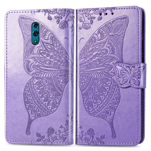 Butterfly Love Flowers Funda de Cuero con Tapa Horizontal En Relieve para Oppo Reno, con Soporte, Ranuras para Tarjetas, Billetera y Cordón (Morado Claro)