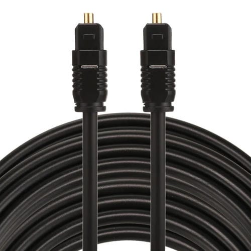 - Cable Óptico Toslink macho a macho de 15 metros, Conectores con agarre plástico antideslizante y Tapas protectoras