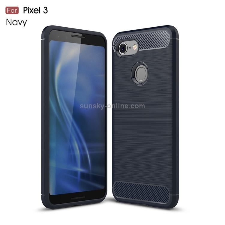 Carcasa TPU Fibra de Carbono Textura Cepillada para Google Pixel 3 (Azul Marino)