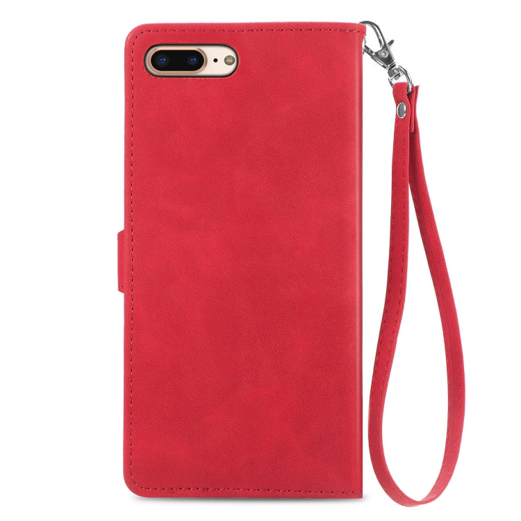 Case de Teléfono Cuero a Prueba de Choque Flores En Relieve iPhone 8 Plus / 7 Plus (Rojo)
