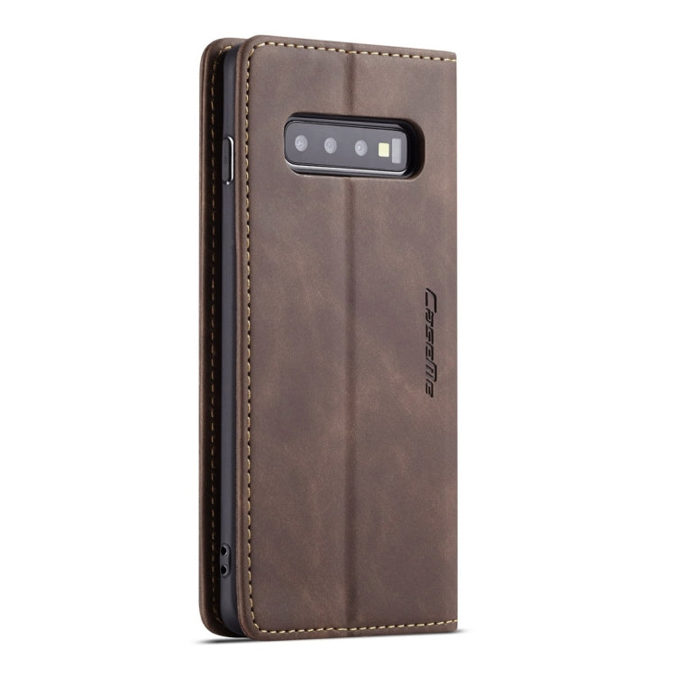 Estuche multifuncional Caseme-013 de cuero abatible horizontal retro esmerilado para Galaxy S10 con ranura para tarjeta soporte y billetera (Café)