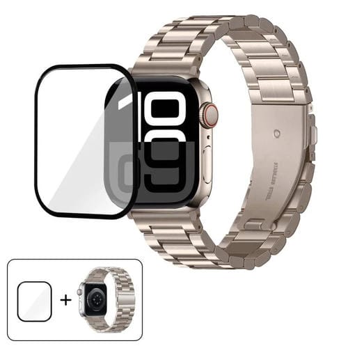 Correa de acero inoxidable con tres cuentas y película curva 3D para Apple Watch Series 10 de 46 mm (Starlight)
