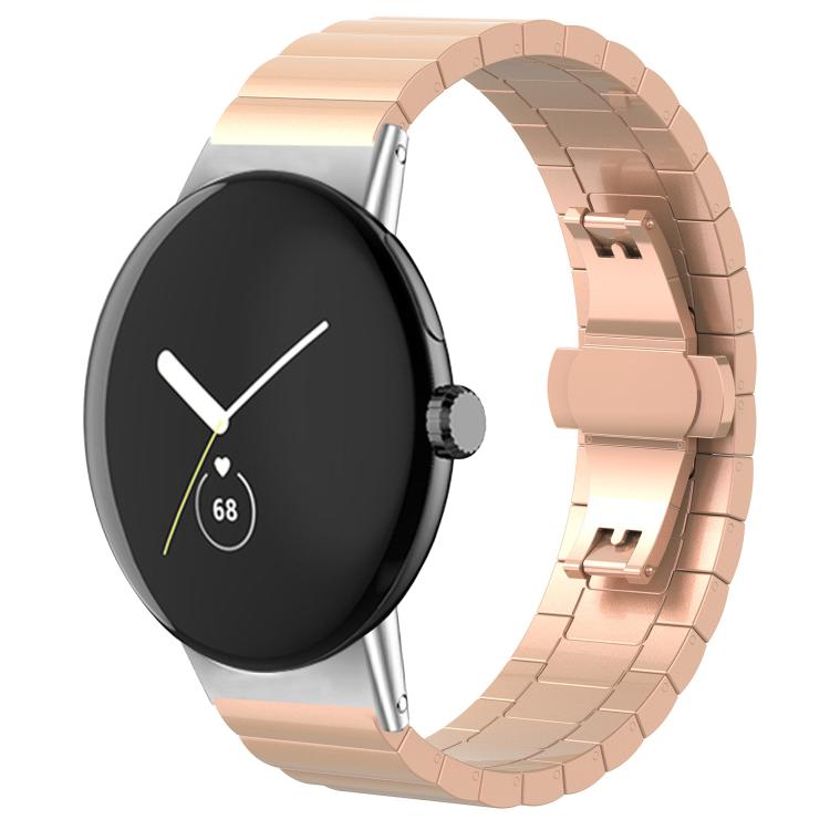 Correa de acero inoxidable macizo de bambú de una sola cuenta para Google Pixel Watch 4/3 de 45 mm (oro rosa)