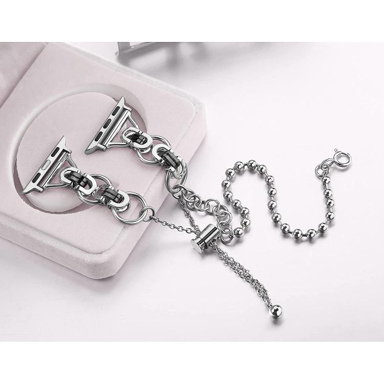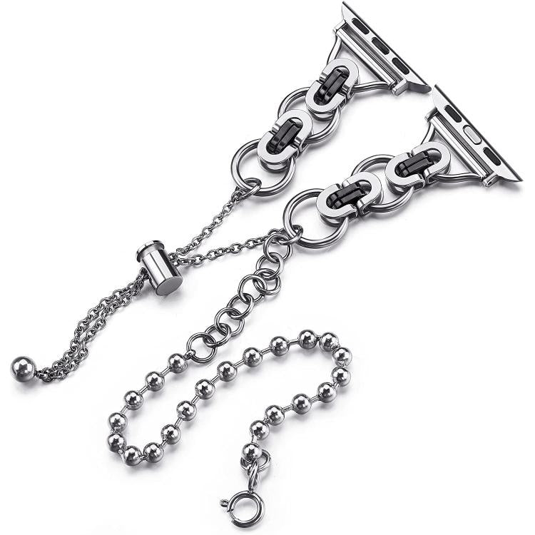 Correa de aleación de zinc con cadena de cuentas de doble círculo para Apple Watch de 46 mm, 49 mm, 45 mm y 44 mm (negro)