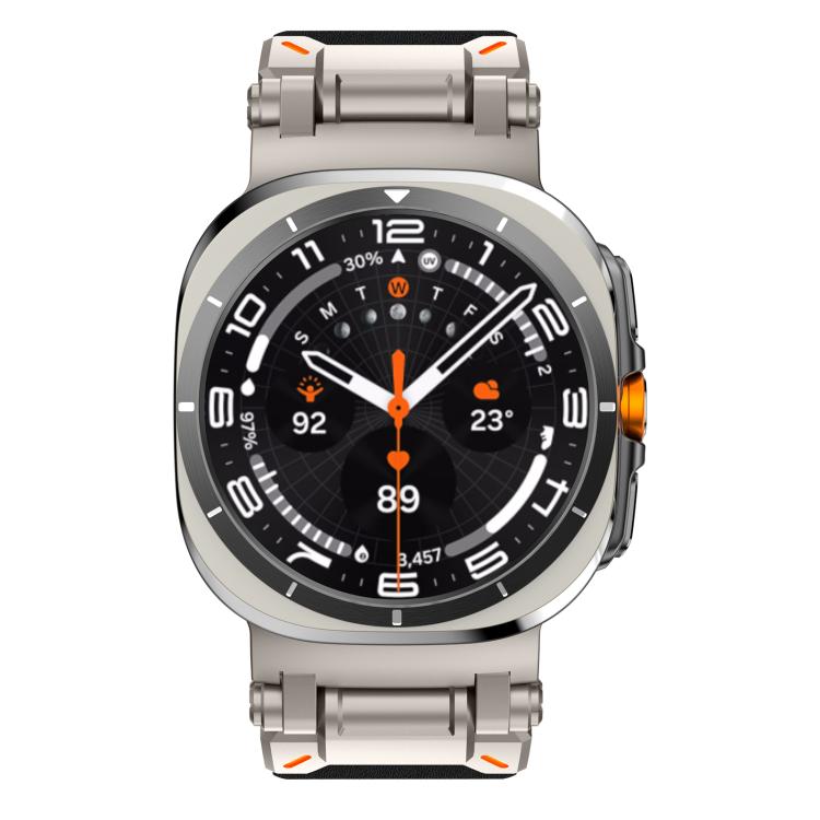 Correa de cuero con cabeza de acero inoxidable Explorer para Samsung Galaxy Watch Ultra de 47 mm (negro titanio)