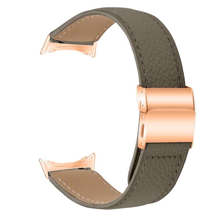 Correa de cuero con hebilla de caparazón de tortuga en oro rosa con textura de lichi de 41 mm para Google Pixel Watch 4 / 3 / 2 / 1 (Gris)