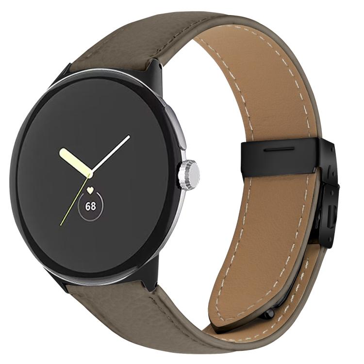 Correa de cuero con hebilla de caparazón de tortuga negra con textura de lichi de 41 mm para Google Pixel Watch 4 / 3 / 2 / 1 (Gris)