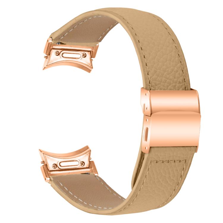 Correa de cuero con hebilla trasera de tortuga en oro rosa y textura de lichi de liberación rápida para Samsung Galaxy Watch 7 de 40/44 mm (Camel)