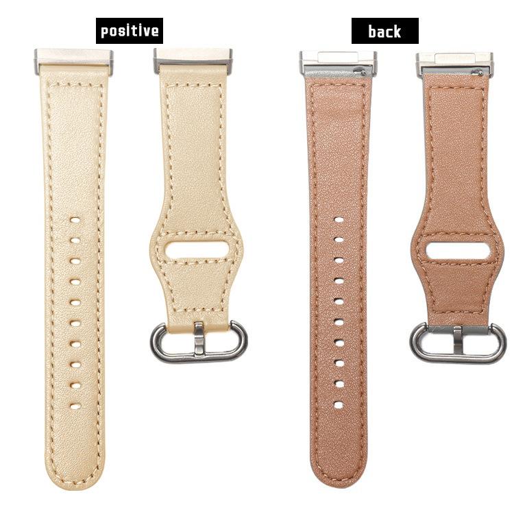 Correa de cuero genuino con hebilla clásica para Fitbit Versa 3/4/Sense 2 (blanco marfil)