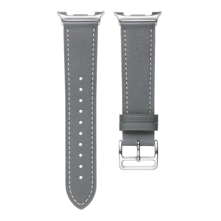 Correa de cuero genuino con hebilla plateada de acero inoxidable para Samsung Galaxy Watch8/Watch8 Classic (gris)
