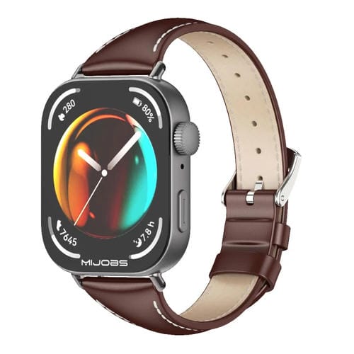 Correa de Cuero Genuino Delgada Mijobs para Reloj Huawei Watch Fit3 (Negro Café)