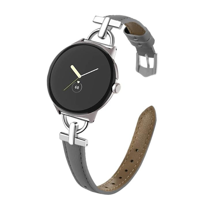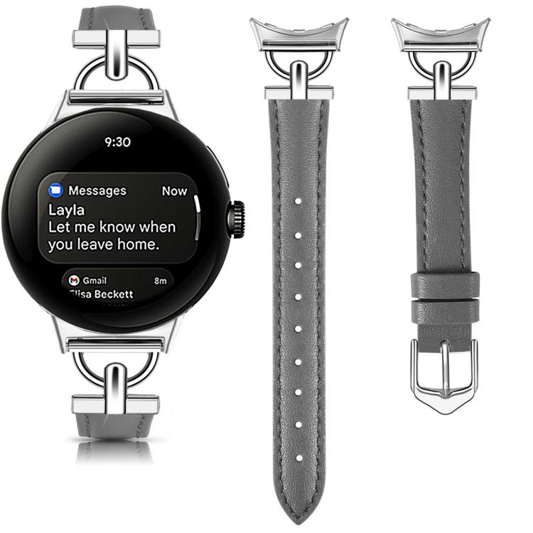 Correa de cuero metálica pequeña en forma de D de 41 mm para Google Pixel Watch 4 / 3 / 2 / 1 (gris)
