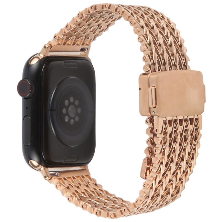 Correa de malla de acero con cierre magnético para Apple Watch de 42 mm, 41 mm, 40 mm y 38 mm (oro rosa)