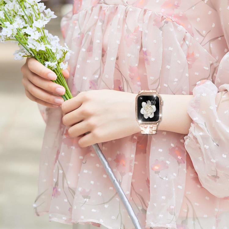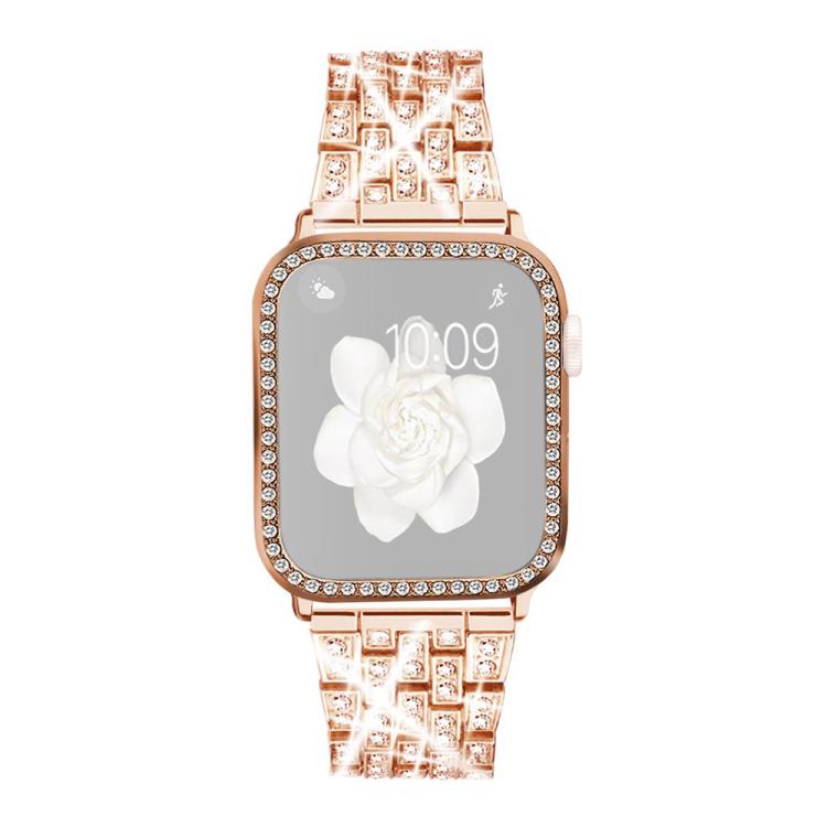 Correa de metal con diamantes brillantes y estuche para Apple Watch Series 41 mm xDfind (oro rosa)