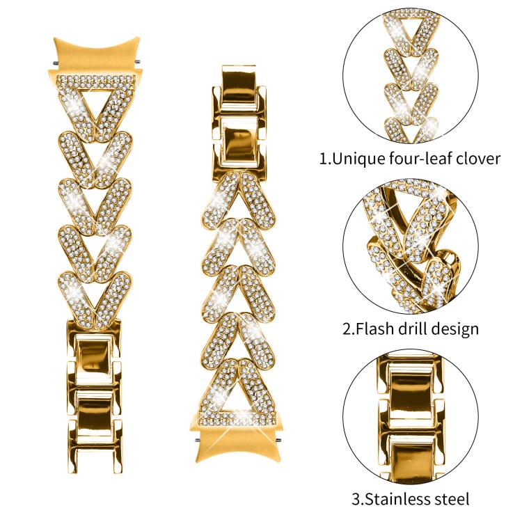 Correa de metal con diamantes pequeños de 20 mm xDfind para Samsung Galaxy Watch FE/7/6/5/4 Classic (dorada)