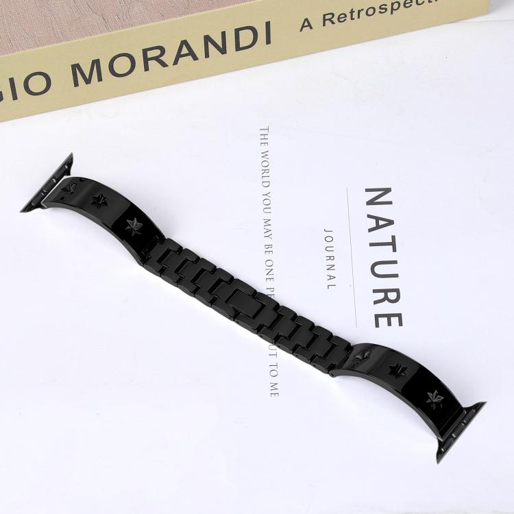 Correa de metal con diseño de pétalos de nieve para Apple Watch de 46 mm, 49 mm, 45 mm y 44 mm (negra)