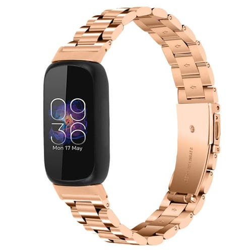 Correa de metal de liberación rápida con tres cuentas para Fitbit Inspire 3 xDfind (oro rosa)