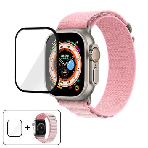 Correa de nailon con hebilla y película curva 3D para Apple Watch Ultra 2/1 de 49 mm (rosa claro)