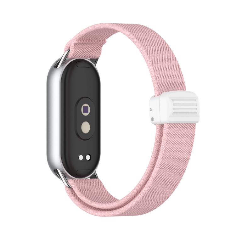 Correa de nailon elástica con hebilla magnética de plástico y cabeza de metal para Xiaomi Smart Band 10/9/8 (rosa perla)