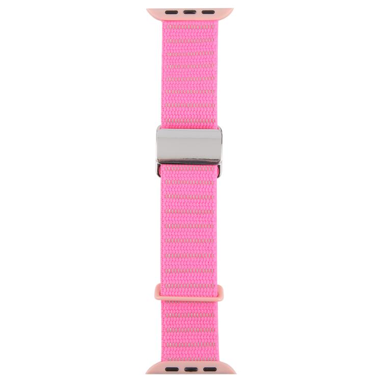 Correa de nailon reflectante con hebilla magnética para Apple Watch de 42 mm, 41 mm, 40 mm y 38 mm (rosa)