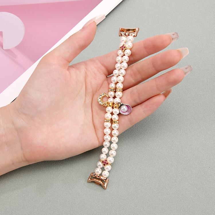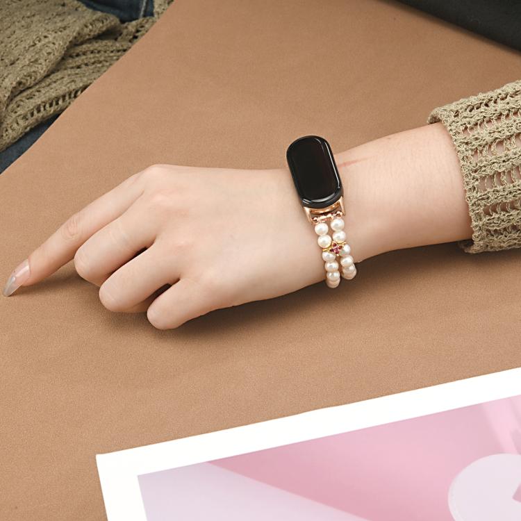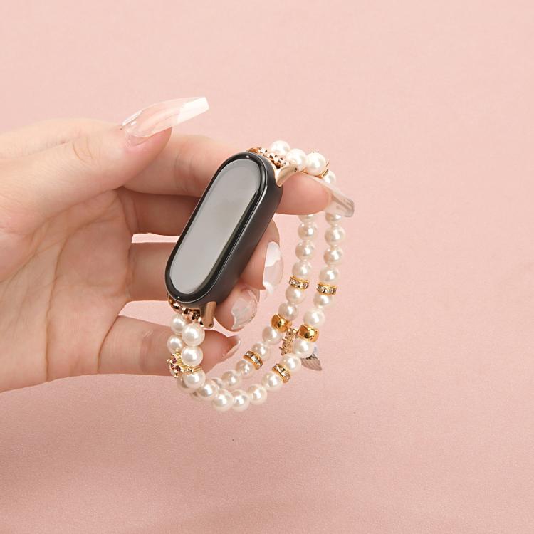 Correa de reloj con cadena de cuentas de doble fila para Xiaomi Smart Band 10/9/8 (blanco perla)