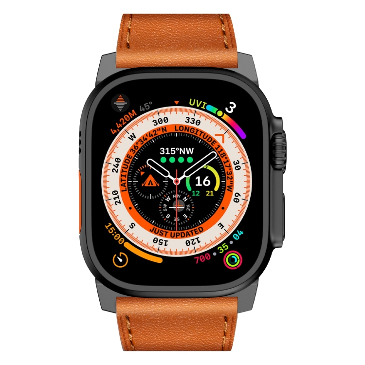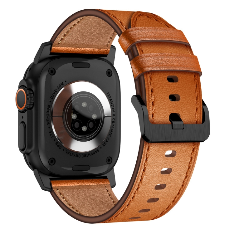 Correa de Reloj de Cuero Grano Superior Wilderness 44mm para Apple Watch Se 2022 (Conector Negro y Marrón)