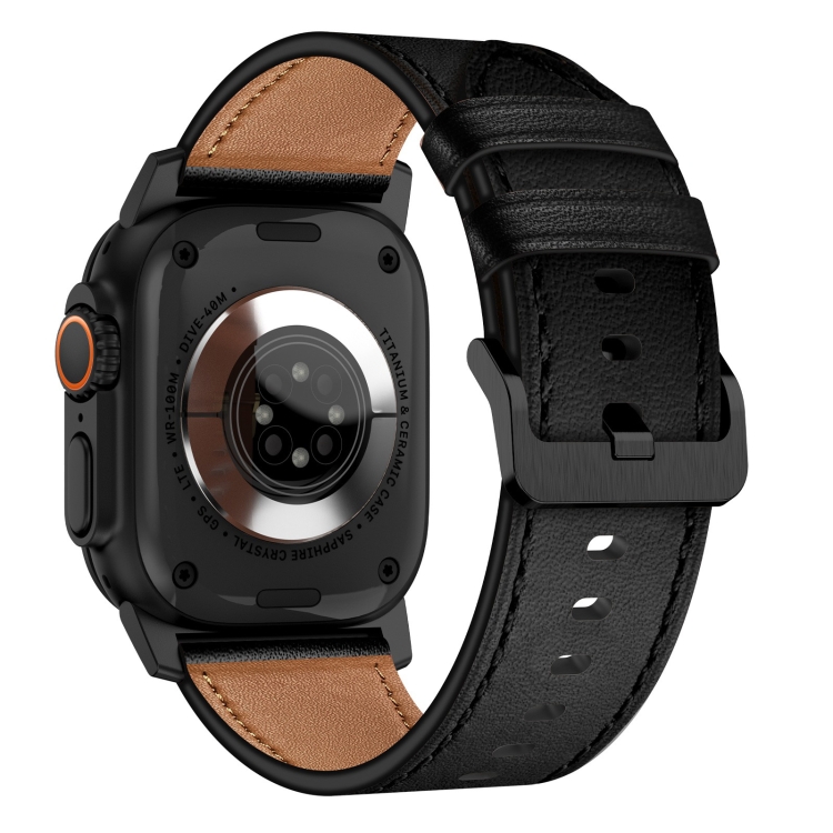 Correa de Reloj de Cuero Grano Superior Wilderness para Apple Watch Se 44mm (Negro)