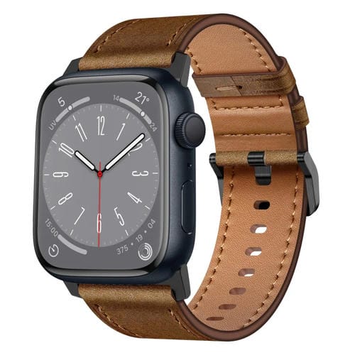 Correa de Reloj de Cuero Grano Superior Wilderness para Apple Watch Series 9 45mm (Conector Negro Marrón Oscuro)