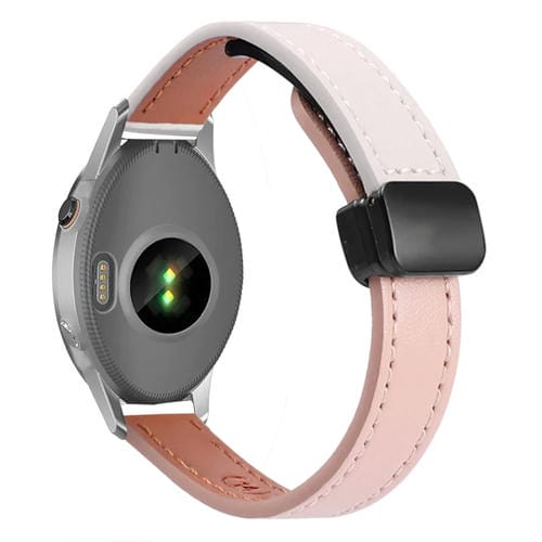 Correa de Reloj de Cuero Microfibra con Hebilla Magnética 18mm para Garmin Forerunner 255S (Rosa y Albaricoque)