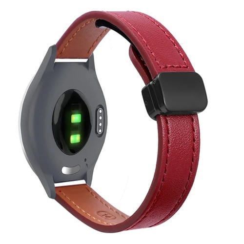Correa de Reloj Cuero Microfibra 18mm con Hebilla Magnética para Garmin Vivomove 3S (Rojo Vino)